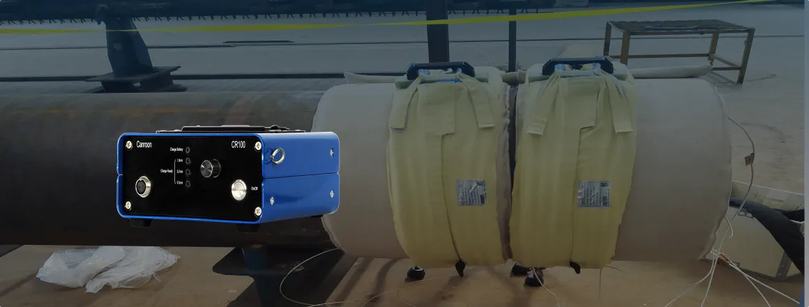 CR100 portable thermocouple welder was designed and manufactured by Canroon, as an important optional accessories of our CR2000 series induction heating system.This portalbe spot welding machine ensures a firm conjuction of thermocouple and workpieces (like steel pipe), which is very important for an accurate temperature measurement and feedback.It can also be used for welding of metal workpiece and other metal material.